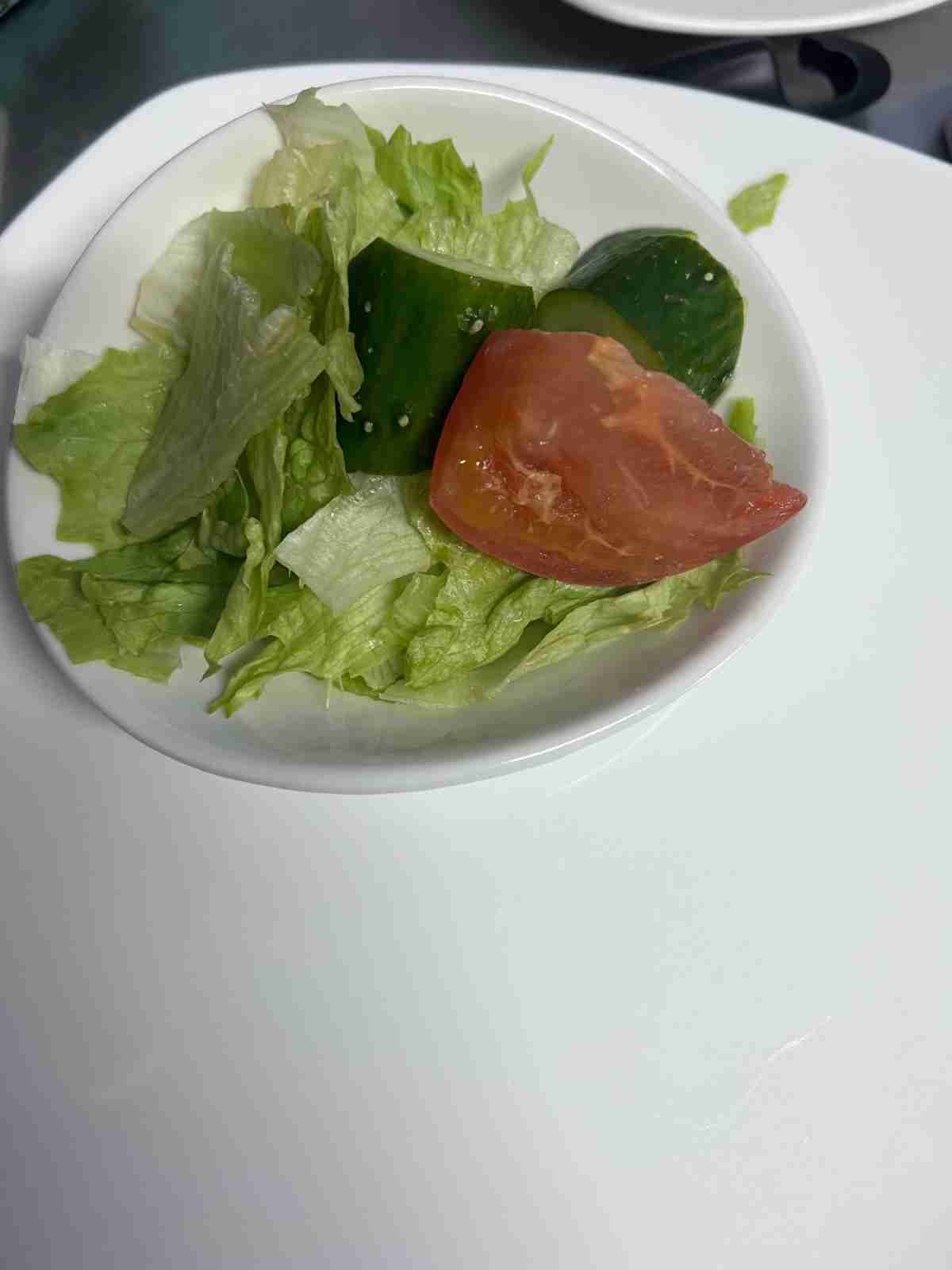 レタスをちぎってキュウリを乱切りで4つくらい、トマトは8分の1くらい。