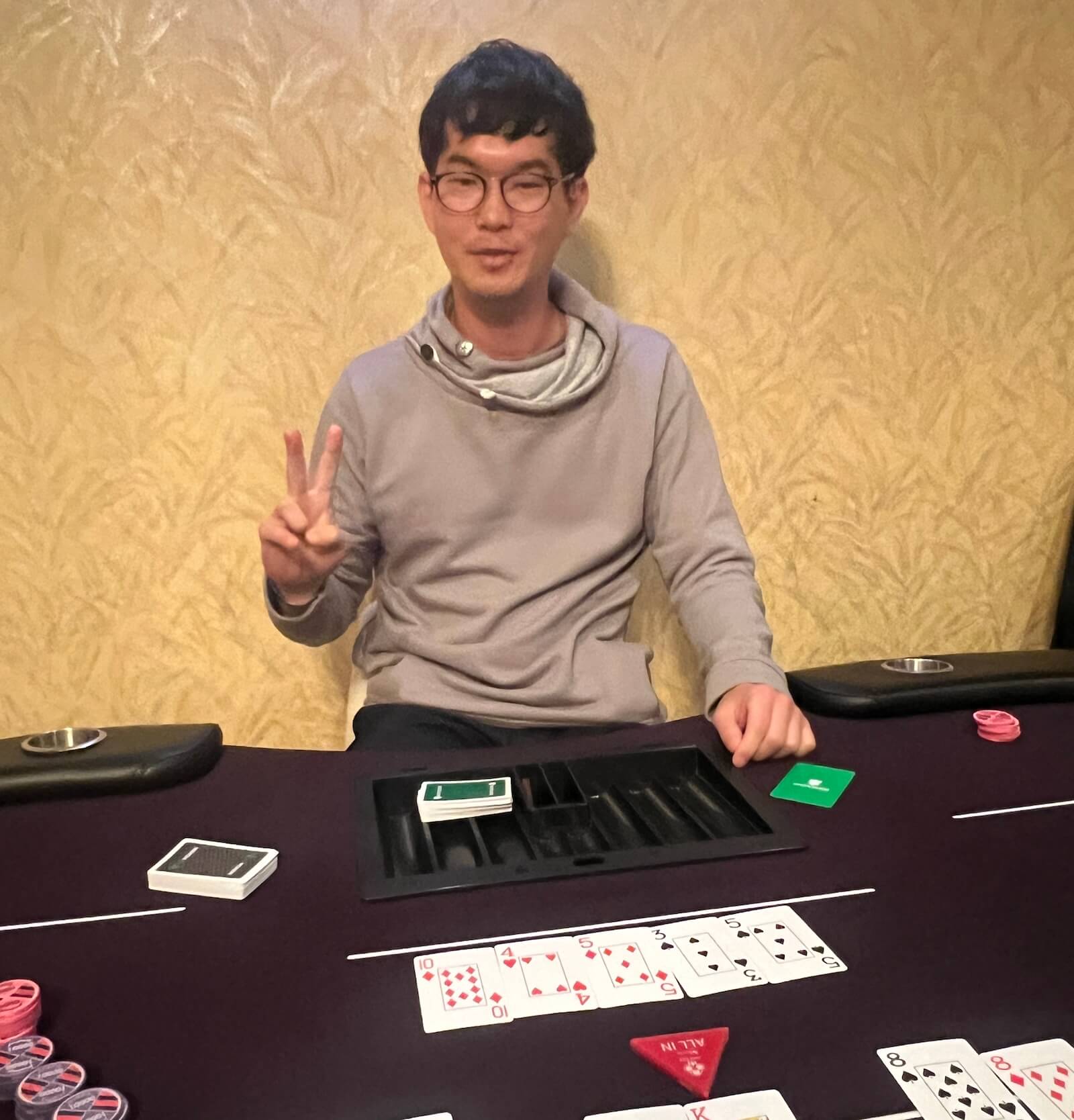 - ディーラーは、未確定チップを回収後、確定チップ半分、未確定チップ半分を飛ばした人に渡します。